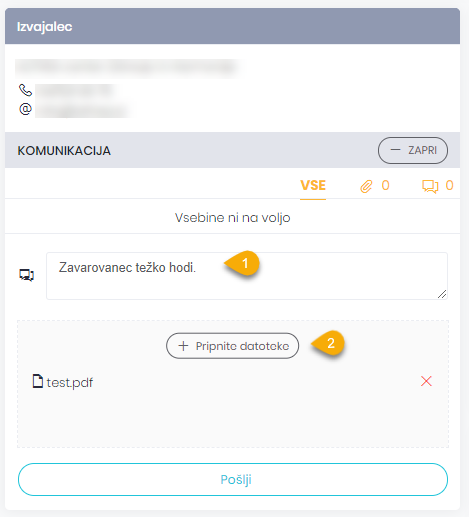 Izvajalcu lahko na že ustvarjeni avtorizaciji naknadno napišemo komentar ali posredujemo datoteko s klikom na + Pripnite datoteko.
