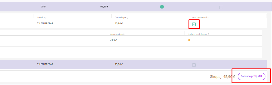 Če je potrebno na izbranih postavkah, za katere ste izdali dobropis, ponovno izdati XML račun, lahko te postavke označite na XML računu, na podlagi katerega ste izdali prvoten XML račun, in XML račun ponovno pošljete. Več o spremembi cen storitve na avtorizaciji in ponovnem pošiljanju XML računa si lahko preberete na tej povezavi.