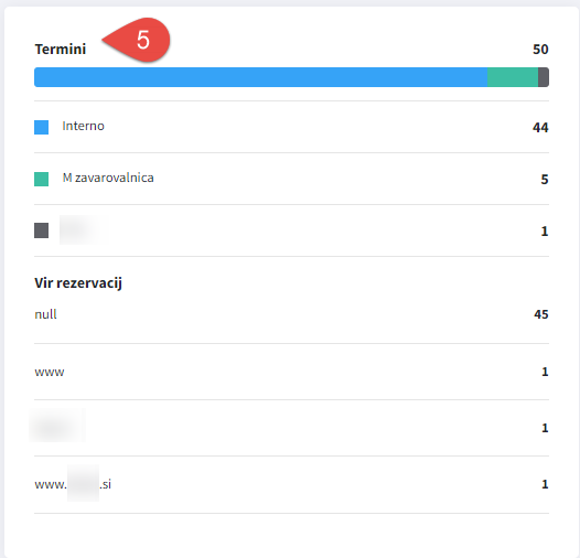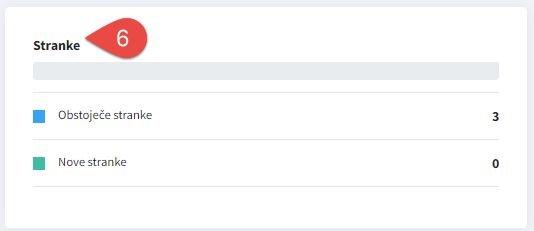 V zavihku Stranke (6) lahko spremljamo podatek o tem na podlagi, koliko različnih strank so bili interno rezervirani termini: