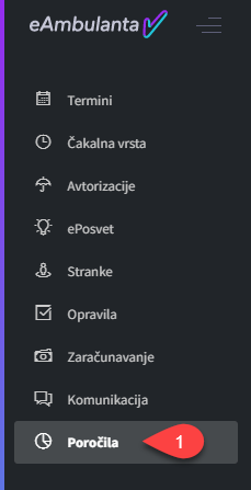 S klikom na zavihek Poročila(1) lahko dostopate iz glavnega menija na levi.