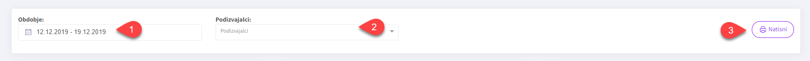 Prikaz poročil lahko prilagajamo tako, da nastavljamo različne filtre (obdobje, podizvajalci).